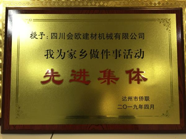 会欧机械获达州市“我为家乡做件事活动”先进集体称号
